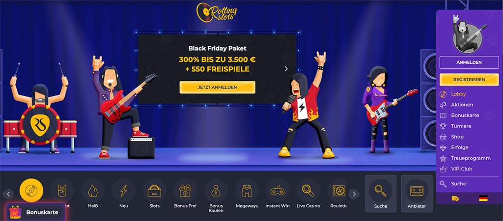 Rolling Slots ist ein Online Casino, das den Nervenkitzel und die Aufregung weckt, die nicht nur Rock'n Roll, sondern auch Glücksspiele verursachen.
