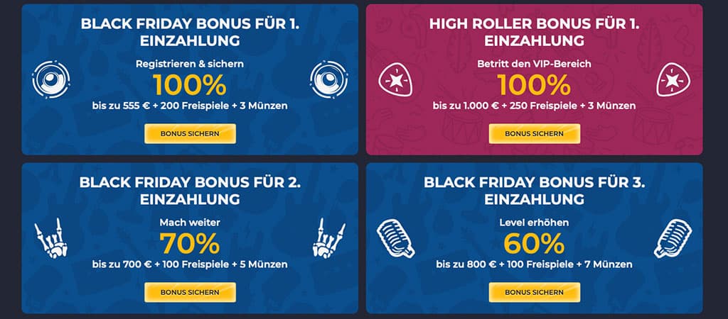 Anstelle der 260 Freispiele Willkommenspaket bietet der aktuelle Willkommensbonus allen neuen Spielern ein Angebot von 330% Match Bonus bis zu €3.500 plus 730 Freispiele. Dieses Willkommenspaket ist in folgende Boni für Deine ersten vier Einzahlungen unterteilt: